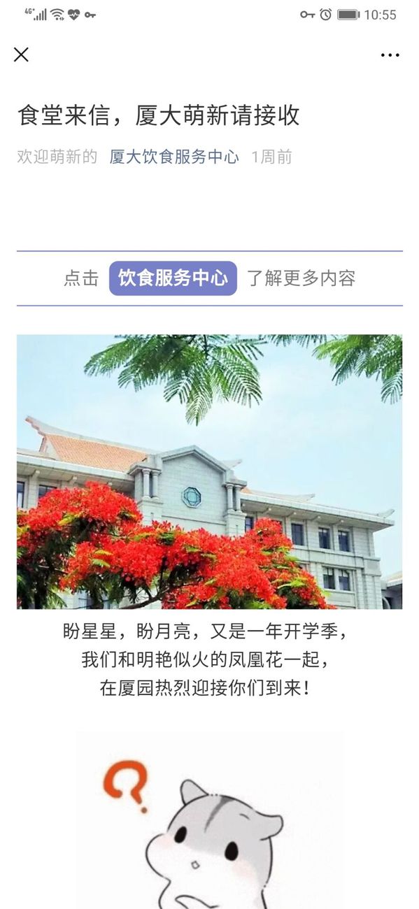 “厦大饮食服务中心”通过公众号及时发布用餐指引,帮助师生及家长快速了解厦大的用餐概况和用餐要点。