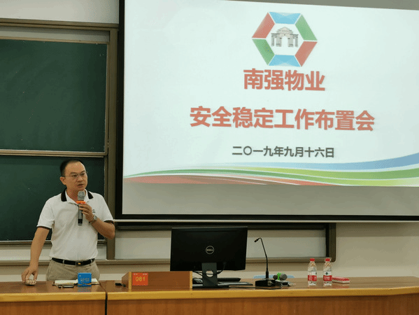 9月16日下午,南强物业在双十中学枋湖校区物业项目部召开安全稳定工作布置会。会议由公司总经理郑东升主持,后勤集团分管物业公司的副总经理刘君彬、公司全体职能部门及项目负责人参加此次会议。