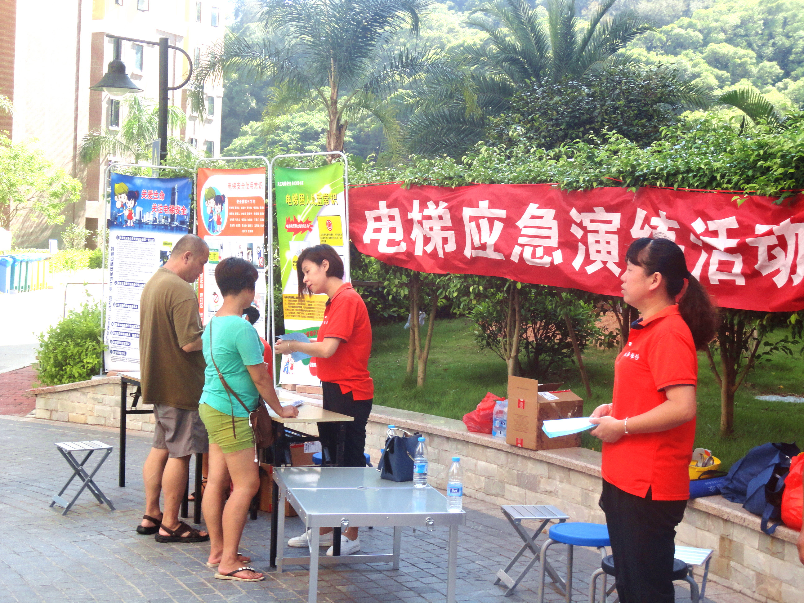 为了进一步增强小区业主的电梯安全和消防安全的意识,提高抗击突发事件的应变能力,营造更加安全舒适的社区环境,7月29日下午15:00,海韵北区服务处联合电梯维保单位、消防维保单位在海韵北小区开展电梯、消防安全知识普及和电梯应急演练活动,吸引了大批业主的驻足观看和主动参与。