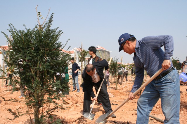 2019年4月,烈日下种植碧桃150株、紫叶李23株
