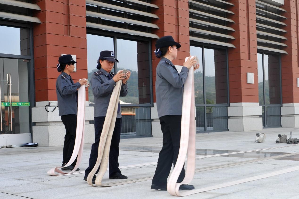 演练现场,模拟火情并实际点火后,安防队员按“发现火情-及时报告-快速预判-组织队伍-火灾处置-善后处理”的应急处置程序展开了扑救演练。灭火行动组、疏散引导组、安全防护救护组、火灾现场警戒组各尽其职。整个演练从发现火情到扑灭大火,反应快速、处置得当,达到了预期的效果。