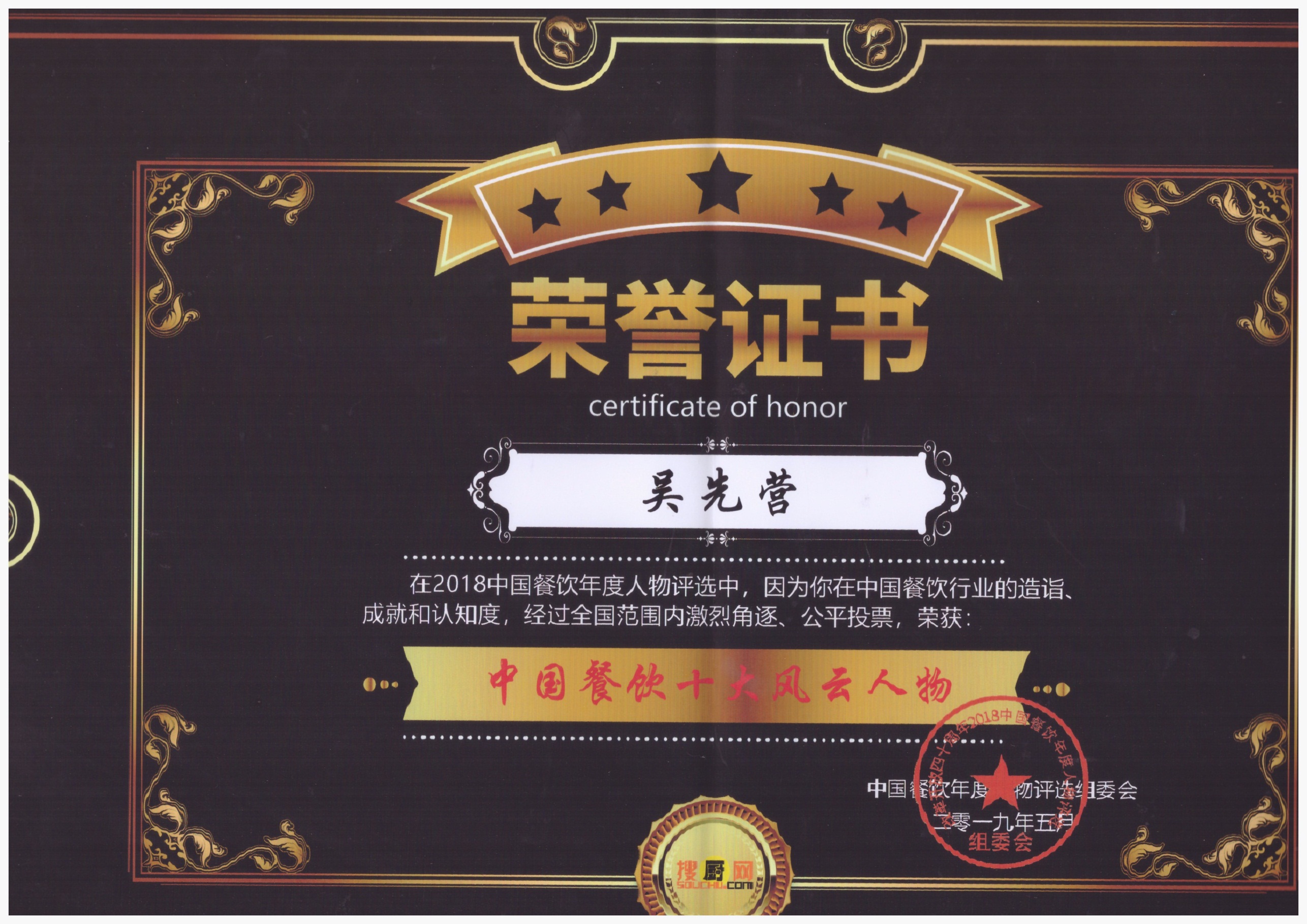 荣获“2018改革开放40周年中国餐饮十大风云人物”、“十大金牌总厨”奖杯