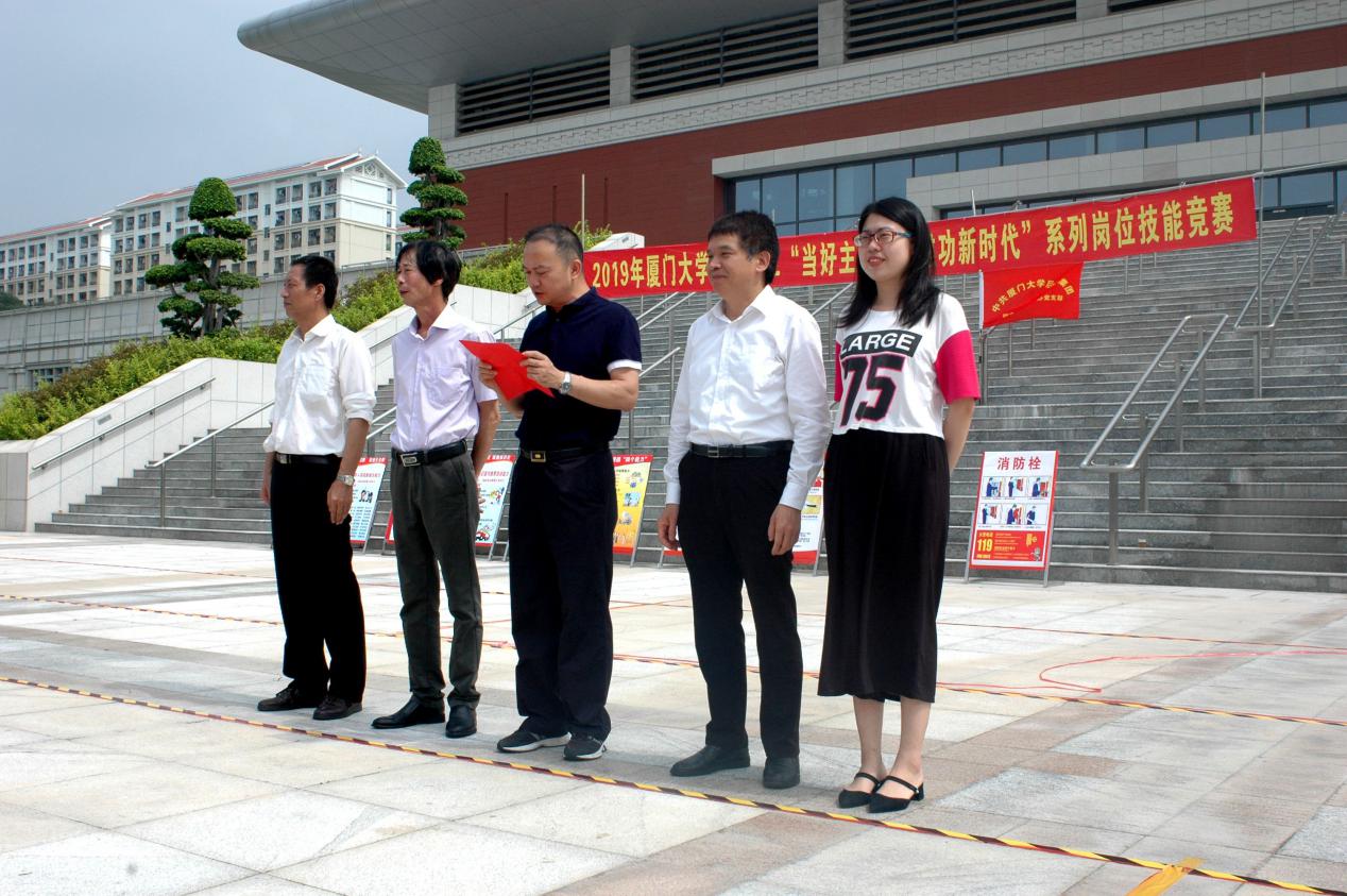 为进一步激发后勤职工的主人翁精神,打造一支具备“一流意识”,掌握“一流标准”,提供“一流服务”,创造“一流业绩”的后勤职工队伍,5月28日上午,由集团部门工会主办、翔安校区服务办承办的水带操技能竞赛在翔安校区开赛。集团副总经理刘君彬作动员讲话。集团总经理助理、翔安校区服务办主任汪尚谦,公环中心副主任、翔安校区服务办副主任黄团良到场观摩指导。