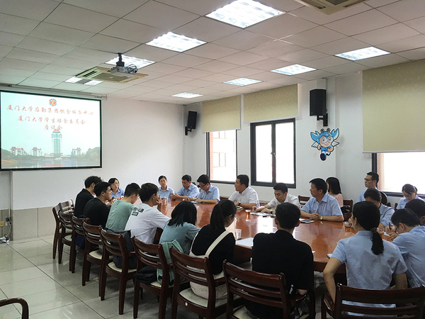 膳委会同学代表首先观看了中心的宣传影片,对中心的性质及工作流程有了进一步的了解。随后,同学们对思明校区各餐厅提出了各类意见和建议。