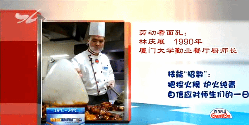 5月1日,厦视二套《特区新闻广场》推出了五一特别节目——《劳动者 奋斗者》,介绍了饮食服务中心勤业餐厅厨师长林庆展的故事。