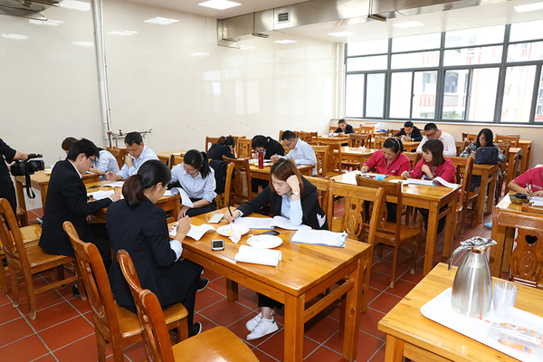 现场大家看到,厨房地面无油无水、操作台清洁无油腻;物品放置井然有序、分类清晰;食材仓库等归类整齐、标识清楚;毛巾按颜色分类、工具整齐地放置……后厨内每件物品各归其位,每个岗位责任到人,形成了一道风景,得到了各位领导和评审员的认可和肯定。