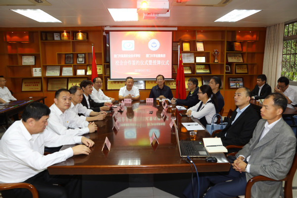 4月11日上午,后勤集团与厦门市集美职业技术学校在集团会议室举行“校企合作”签约仪式,双方就校企合作、实训基地建设、人才培养、标准化管理等多个项目达成了长期合作意向。集团及集美职校有关领导、部门负责人参加了签约仪式,集团总经理林公明与集美职业技术学校校长杜志忠代表双方在校企合作协议书上签字,并互赠合作牌匾。仪式由集团党委副书记邓泽君主持。