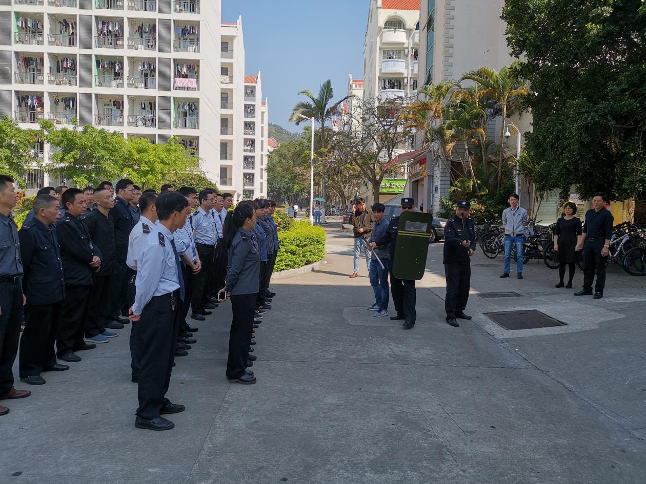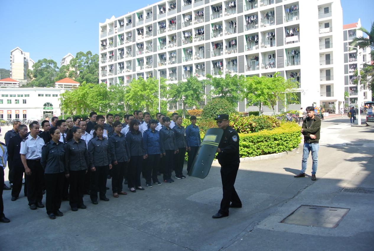 为进一步提高校园安保人员应对暴力恐怖事件的现场处置能力,维护学校安全稳定,保障师生员工人身和财产安全,4月16、18日,学生公寓与环境服务中心联合大学路派出所、校保卫处分别在南校门、海韵学生公寓开展校园突发暴力事件反恐应急处置演练。学校保卫处处长徐跃进、副处长陈锦华及相关人员,学生公寓与环境服务中心主任张金满、相关部门经理到现场观摩指导。