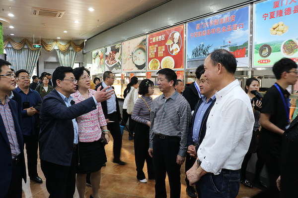 3月28日中午,勤业餐厅二楼“厦门大学精准扶贫宁夏隆德县特色食品窗口”迎来一批神秘客人,在副校长邓朝晖、校办副主任马进龙、我校到隆德县挂职的副县长马龙、后勤集团副总经理陈有亮等人的带领下,他们详细参观了这个窗口,看到了传说中的“用隆德县特色产品制作”的美味佳肴。