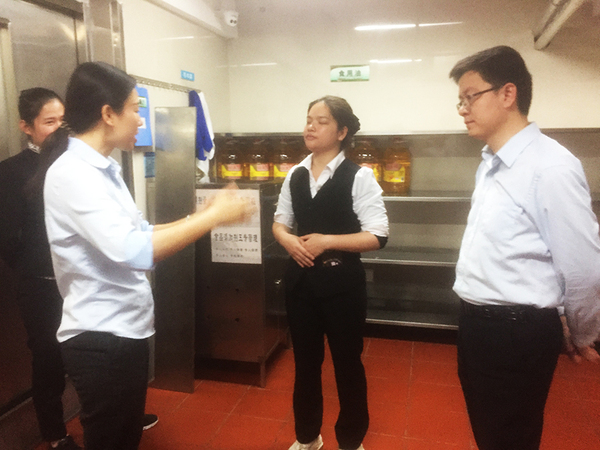 由采购组、机修组、办公室组成的检查小组,在中心副主任林琳的带领下,再次对思明校区各餐厅进行抽检,针对餐厅食材仓储情况,就仓库管理是否按规范进行,食品存放是否离地离墙,是否做到先进先出,是否存在过期食品,散装食品是否表明食品名称、生产日期、保质期等内容,食品实物是否与索证索票信息对称等方面从粮、油、米、面到调味、香辛料、食品添加剂逐项进行细致检查。