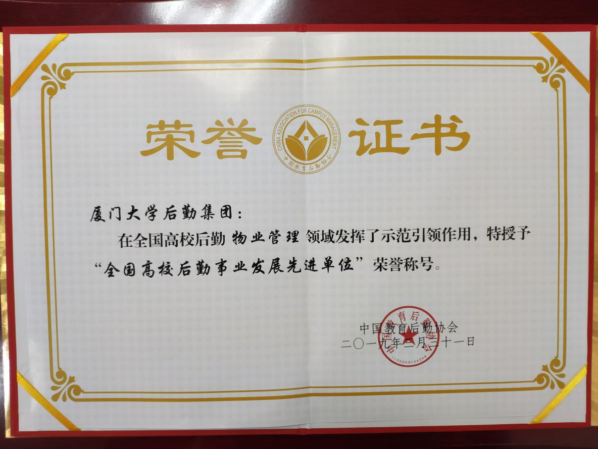 3月31日,中国教育后勤协会第二次会员代表大会、新时代高校后勤改革发展论坛暨后勤工作表彰大会在北京隆重召开。厦门大学资产处处长苏清伟、厦门大学后勤集团副总经理刘君彬、南强物业总经理郑东升、南强物业工程部经理吕楠鑫作为受表彰单位代表参加此次盛会。