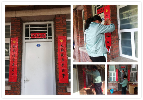 学生宿舍像家一样,过年了,给“家门”贴上春联