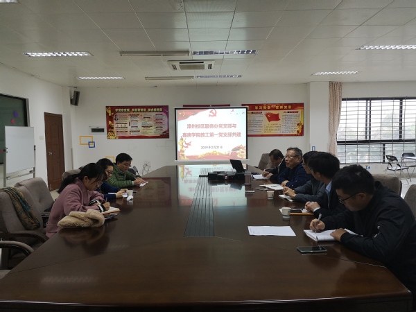 2019年2月21日上午,应漳州校区服务办党支部书记吴泱同志的邀请,嘉庚学院教工第一党支部书记及支委一行三人来到漳州校区服务办会议室,就两个支部开展支部共建的相关事宜进行商讨,漳州校区服务办党支部全体支委参加会议。