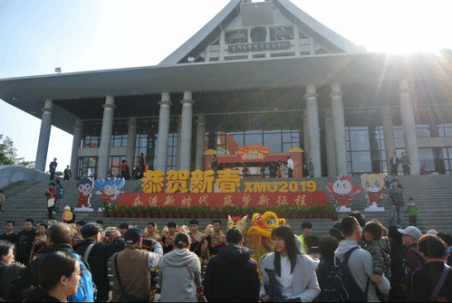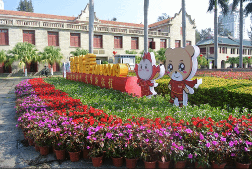 科艺中心、群贤校门“恭贺新春XMU2019”摆花布置