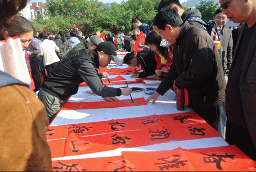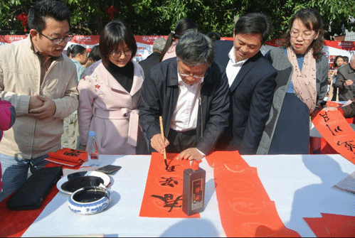新春游园会上,中心副主任张国强为师生员工挥毫写春意、泼墨送吉祥!