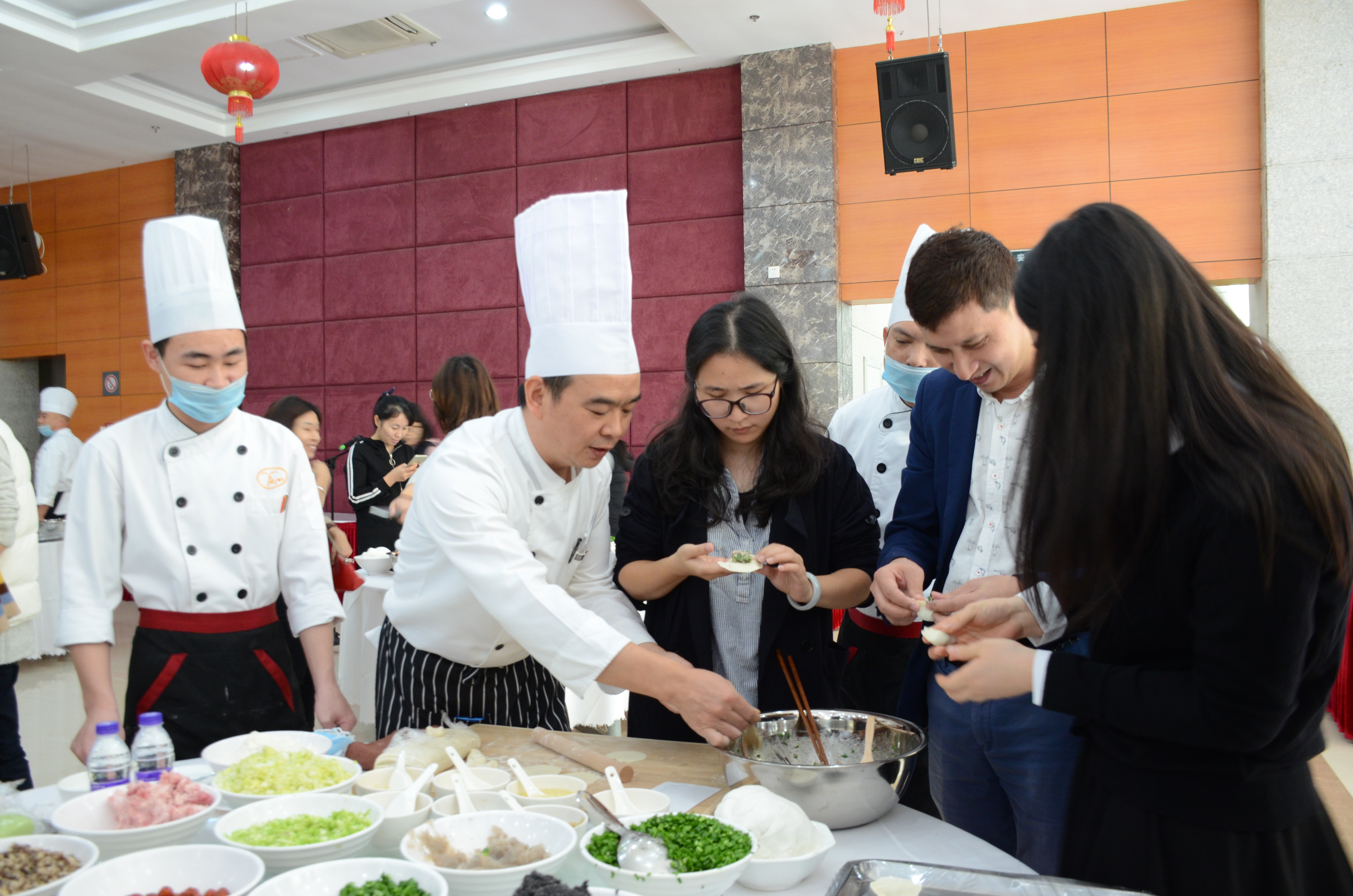 (四)厦门水务集团厦大餐厅里,甲方领导与餐厅员工一起包五色水饺