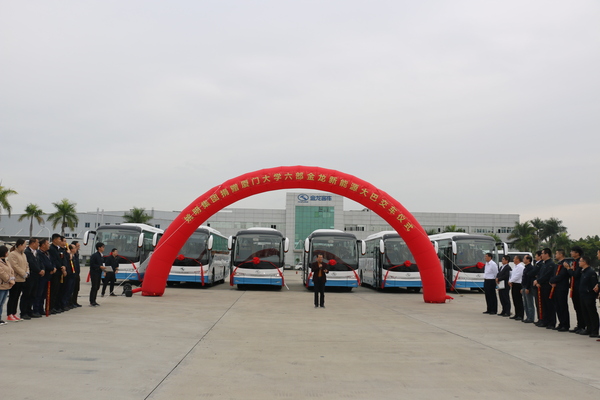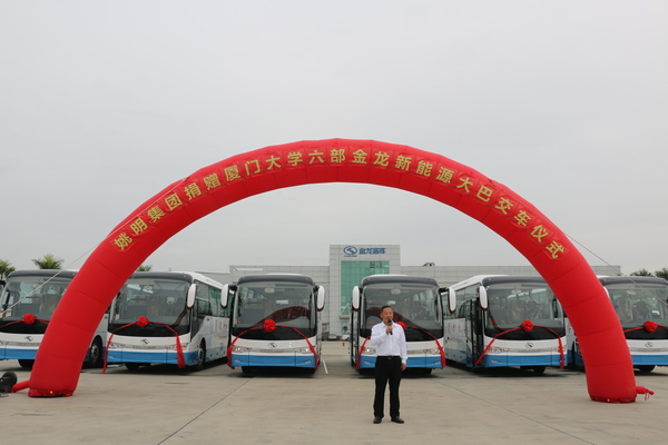 12月25日上午,在金龙集团总部广场,姚明集团再次为学校捐赠价值300万元的6部新能源大巴车。厦大85级校友、厦门校友会会长、姚明集团董事长姚明,集团总经理林公明、党委书记刘立荣、副总经理王裕民,金龙客车销售总经理郑小虎、销售副总经理连伟吉,以及三方相关部门人员出席了交车仪式。
