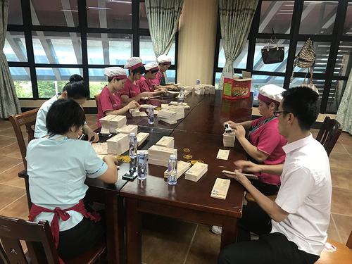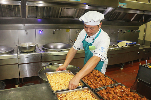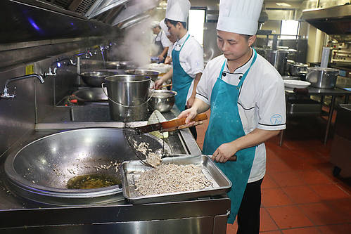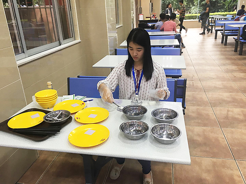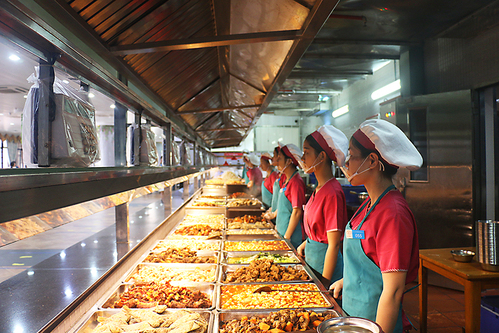 除勤业和东苑清真两个专场餐厅,校内其他餐厅各司其职,按照工作部署做好工作校内人员餐饮分流工作。短时间内用餐人数骤增,餐厅按照计划合理安排,延长供餐时间,平稳顺利供餐。职能部门全力配合餐厅提供配套服务:机修组加强巡查,随时待命检修设备,加班加点赶制餐厅临时需要的器具;采购组做好食材供应工作,根据需求指示及时调拨物资;办公室全员加班加盖清点餐券,到现场协助各类临时紧急事务,做好宣传工作。财务部按集团要求做好餐票售卖、发票开具工作。翔安校区餐厅做好为大赛配套项目如电影摄制组和大赛闭幕式学生演出集训供餐等工作。