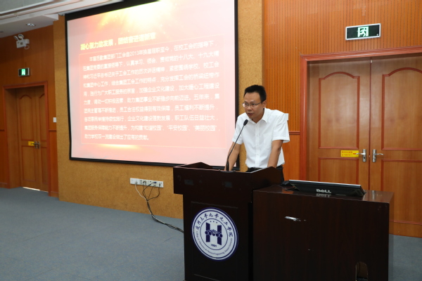 会上,集团部门工会主席沈雄晖代表本届集团部门工会委员会向大会作了题为《凝心聚力助发展,团结奋进谱新章》的工作报告,并就部门工会经费收支情况作了说明。“凝心聚力助发展,团结奋进谱新章”,报告从“党委引领聚合力,改进工作促发展”、“发扬民主共参与,群策群力干事业”、“民生建设不松懈,点滴关爱汇真情”、“学习培训促提升,员工企业共成长”、“文体活动勤开展,企业文化书新篇”五个方面总结了集团部门工会五年来所取得的成绩,他指出五年来,在校工会和集团党委的领导下,集团部门工会认真学习贯彻党的十八大、十九大精神和习近平总书记关于工会工作的历次讲话精神,紧密围绕学校、校工会和集团中心工作,结合集团工会工作的特点,充分发挥工会的桥梁纽带作用,践行为广大职工服务的宗旨,加强企业文化建设,加大暖心工程建设力度,调动一切积极因素,为集团一流后勤建设作出了应有的贡献。