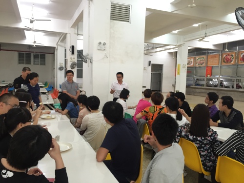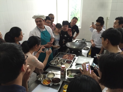 5月3日下午四点,活动正式开始。附中总务处刘炀宾主任和附中餐厅林佳德经理向老师们介绍了活动的流程、意义及三位厨师传授的菜品。三位厨师在现场分别讲解、制作、烹饪了三道菜,并对老师们提出的疑问一一解答,老师们认真聆听,津津有味。现场营造出一种其乐融融、和谐欢愉的学习氛围,充分体现了此次活动的主题意义。