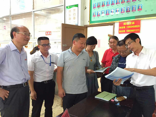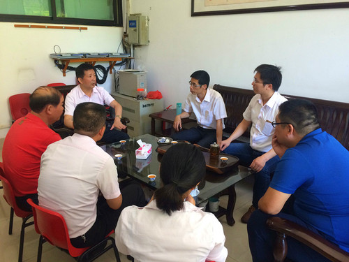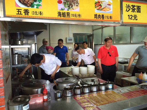 5月8日,后勤集团总经理林公明,党委副书记邓泽君,总经理助理、漳州校区服务办公室主任吴泱对漳州校区餐厅进行安全工作抽查。当天集团领导一行首先拜访了厦大附中姚跃林校长,并邀请姚校长一同就厦大附中餐厅的安全生产工作开展情况进行检查。检查过程中,整齐显眼的标志、内容完备的登记表、统一管理的食品原材料、餐车等物料与设备令人一目了然、印象深刻。为此,姚校长对厦大附中餐厅推行的“5D”现场管理体系给予了充分肯定。林公明总经理则要求厦大附中餐厅继续保持,做好“5D”推行工作。