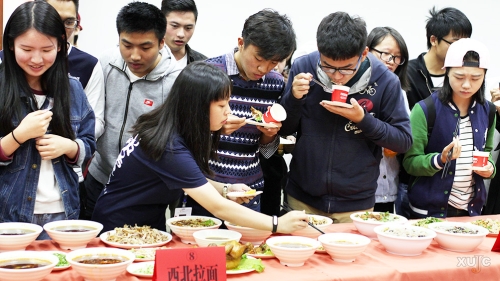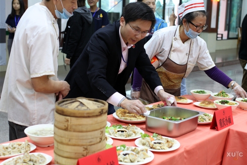 这真是一场令人食指大动、口福眼福满满的活动——12月11日下午,我校首届“食堂美食品鉴会”在北区食堂三楼小吃城举行。五彩水饺、台湾肉燥面、手撕鸡拌面等独“嘉”美味纷纷亮相,一决高下。300多名同学通过微信公众平台报名参与了本次活动,经随机抽取,有100名同学幸运地成为试吃成员,到现场品尝美食。此外,“美食品鉴评委团”则由我校教职工与学生代表共同组成。