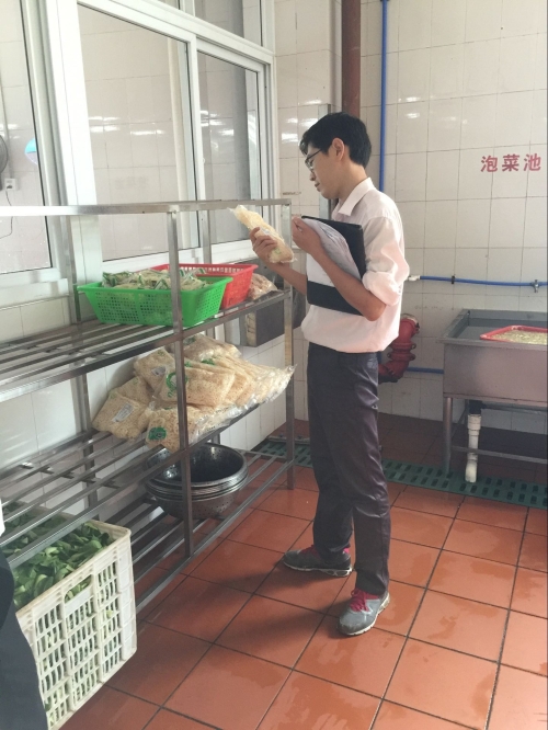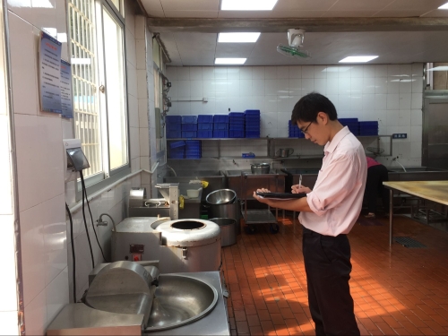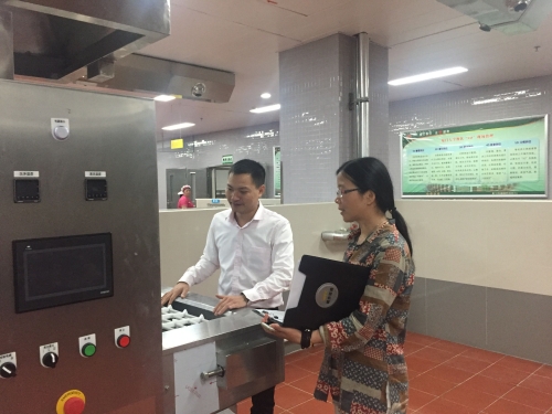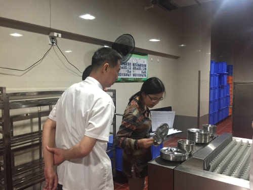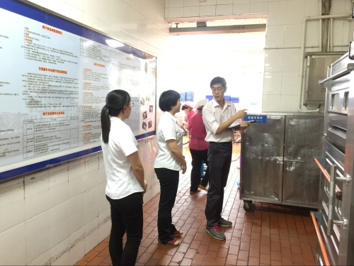 在会上,外审专家组一行在听取了中心基本情况和ISO22000:2005(HACCP)运行情况的介绍后,专家组组长向与会人员阐述了本次审核目的、依据、范围、方法、程序等。随后,专家组在中心工作人员的陪同下分三组深入中心办公室、化验室、南光餐厅、采购组、勤业餐厅、机修组和公寓二期餐厅等部门,针对不同部门的特点,通过口头提问、查看资料和现场考察等方式,对员工操作、食品加工、餐具消毒、菜肴留样、消杀记录、设备配置及安装使用情况等进行了全面、深入、细致的审核。