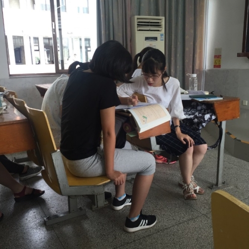 初中组的学生们都是安静的学霸啦,他们认认真真地看书、写作业,遇到疑难问题主动问志愿者;志愿者们则十分负责,为他们耐心讲解,一遍又一遍。