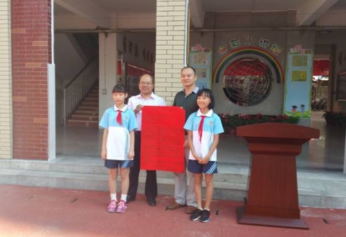 之后,少先队员代表宣读了全体少先队员致南强物业公司的一封感谢信,并将她们手写的感谢信交到后勤集团刘总及物业公司郑总的手中,身在现场的大家无不为孩子们的真诚之情所感动。