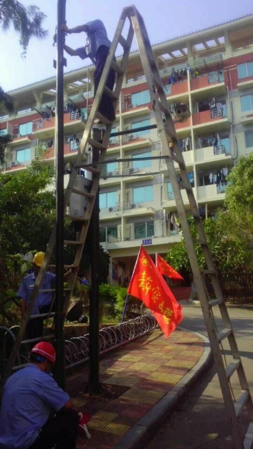 “莫兰蒂”过后,全校路灯损坏严重,总共232处遭到损坏。台风过后水电服务中心连续加班七天,这是一次与时间赛跑的抢修行动,七天中中心总出动162人次,车辆台班16台班,高空作业车8台班,水电维修、学生宿舍送电262人/次,争分夺秒,加班加点,基本恢复全校路灯照明。