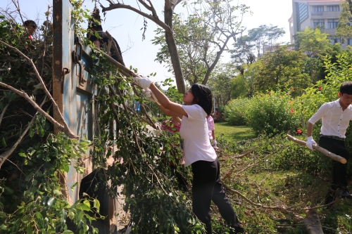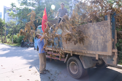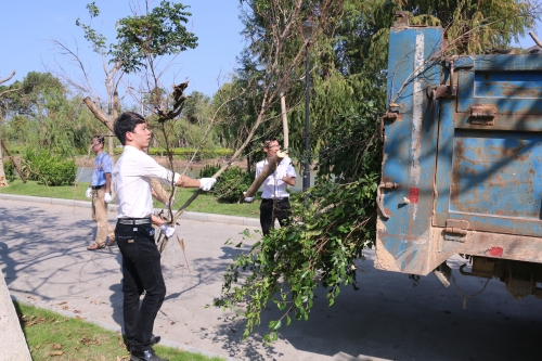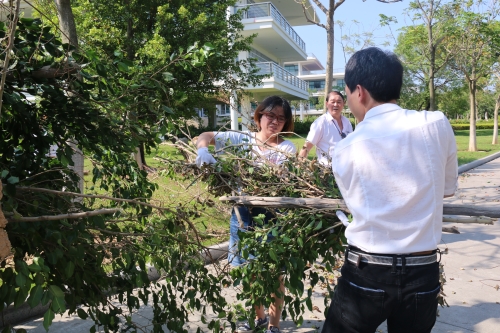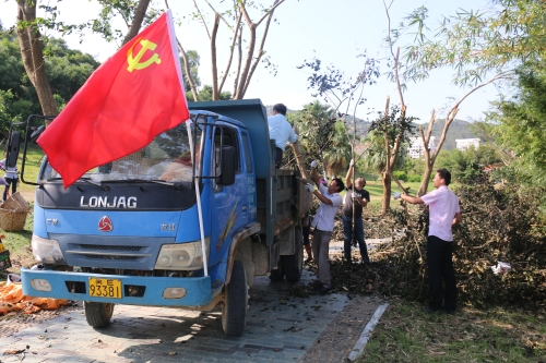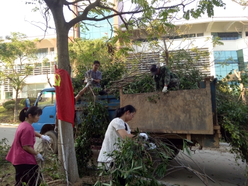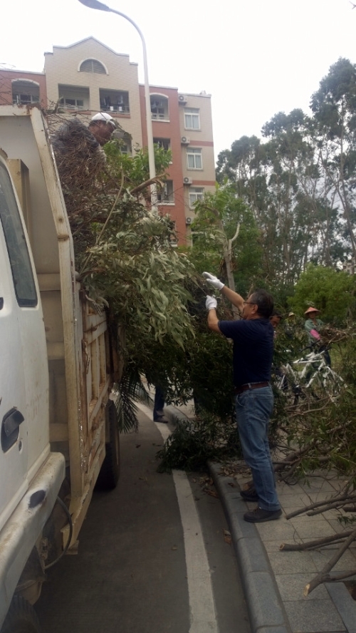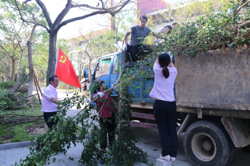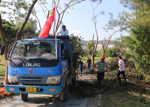 9月15日凌晨,厦门大学漳州校区在今年第14号超强台风“莫兰蒂”侵袭之下,校区树木连根拔起、花草凋零残败、设施扭曲变形,往昔风姿绰约的“嘉”园顿失生气、一片狼藉,令人倍感痛心。但台风无情,“嘉”园有爱。灾害发生后,漳州校区服务办党支部书记吴泱号召支部全体党员“不开清谈馆,要做行动队”。支部党员积极响应支部书记号召,纷纷主动参与到灾后校园清理行动中来,先后于9月23日下午、9月26日下午分别前往校区网球场一侧道路与经管楼一侧道路,通过清理树木断枝、拾捡垃圾杂物、协助搬运装车的方式,分担公环物业部绿化组、保洁组一线员工的工作负荷,用实际行动展示一名共产党员的本色,为重建最美“嘉”园贡献自己的一份力量。