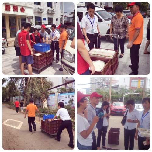 爱心午餐品类丰富:汉堡、牛肉面、沙茶面、套餐盒饭、热腾腾的例汤等等应有尽有。平日里,看似简单的送份“盒饭”而已的举动,温暖了灾后的人心,一句句道谢的回声传入耳帘,“厦大餐饮”人感恩志愿者们的辛勤付出,志愿者们感恩“厦大餐饮”人的暖暖真情。科技中学餐厅全员在保证台风过后校园顺利供餐的同时,为灾后的重建工作献上自己的一份爱心。