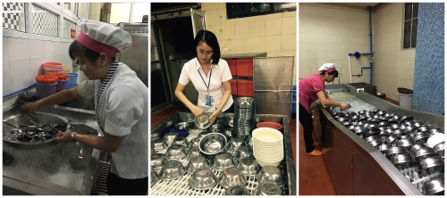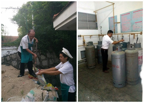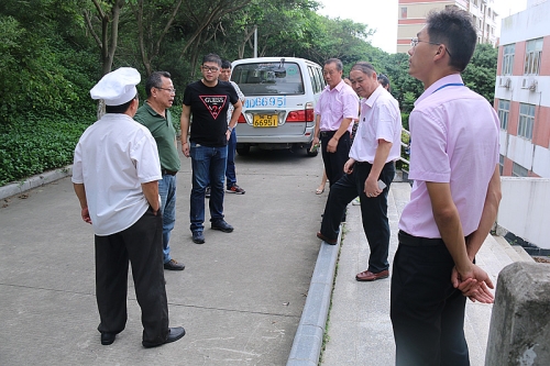 台风来袭时期的三餐供应保障工作攸关漳州校区的安全稳定,历来倍受领导的高度重视。9月14日当晚,厦门大学校长助理、漳州校区党工委书记、管委会主任、嘉庚学院党委书记邱伟杰,嘉庚学院党委常务副书记、副院长鲁同安,嘉庚学院党委副书记张必华,嘉庚学院副院长雷锐生,嘉庚学院办公室主任徐维纲在集团总经理助理、漳州校区服务办公室主任吴泱的陪同下着重检查了北区餐厅各窗口的晚餐供应情况。随后,在漳州校区服务办公室,邱伟杰等在家领导与应邀前来的招商局漳州开发区教育卫生局局长邹力权分别就开发区与漳州校区本次防抗“莫兰蒂”的各项准备工作进行了简要介绍、交换了彼此意见。