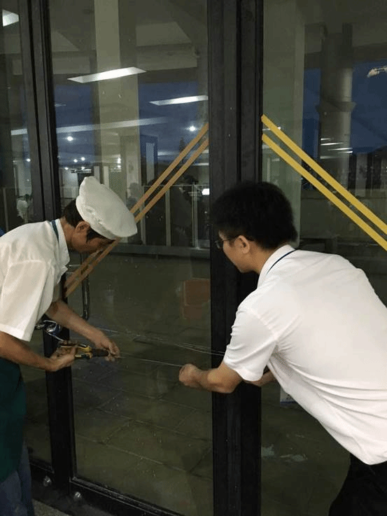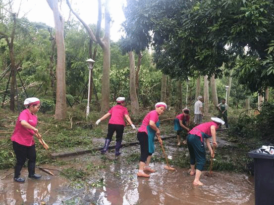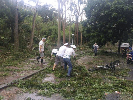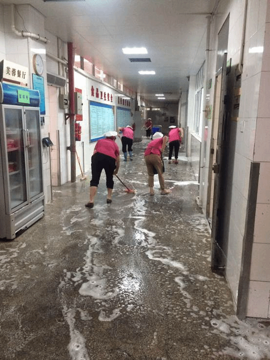 台风过境,各校区餐厅都受到不同程度的破坏,虽然设备受损,彻夜抗台身心疲惫,还要面对断水断电的挑战,但饮食服务中心牢记宗旨——“为师生员工提供餐饮保障”,提起十二分精神,启动应急预案。紧随集团领导指示,中心领导、各校区餐饮部负责人现场协调,同餐厅经理之间实时沟通,各餐厅在狂风暴雨的伴奏下,操起锅铲,唱响厨房协奏曲。