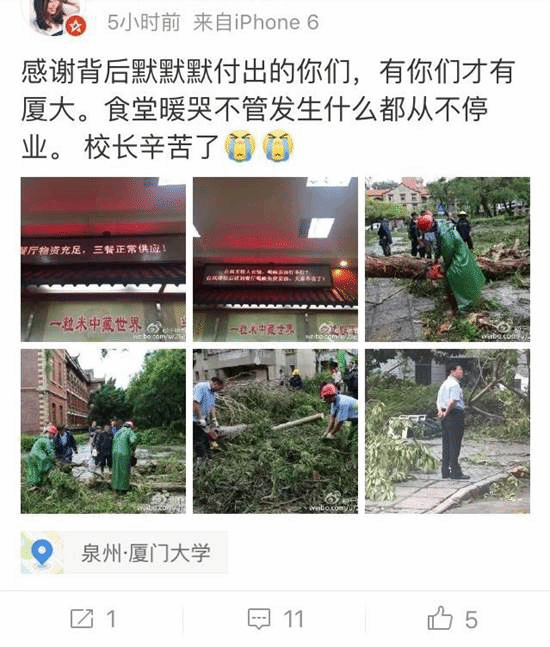 无论台风如何肆虐、天气如何恶劣,不管抗台多么艰辛,校园等待重建,后勤保障一直在。厦大餐饮,不止温暖你的胃;家的味道,凝聚所有厦大人。