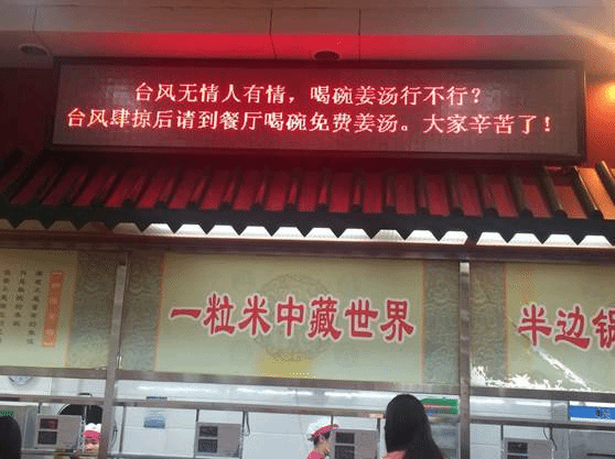 中秋佳节有温情——9月15日,所有饮食人都投身于抗台抢险时,似乎都忘了这一天也是中秋佳节。许多老师感叹中秋连茶水都喝不上时,南光餐厅却免费供应了姜茶,为经历一夜狂风暴雨的师生驱寒。当天下午,法学院学生带着特意采购的月饼来到海滨餐厅,热情地为餐厅员工送上中秋祝福。抗台、供餐忙碌之余,厦大人彼此之间的暖心之举让我们感受到满满的情谊、暖暖的能量。