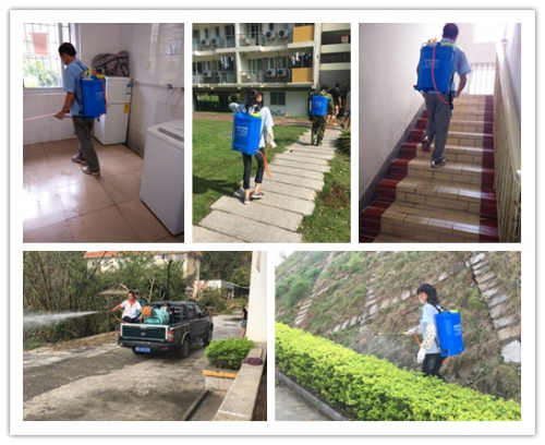 守护家园,无微不至。为防止台风后的环境污染和疫情传播,学生公寓等区域的消杀工作也迅速跟上。