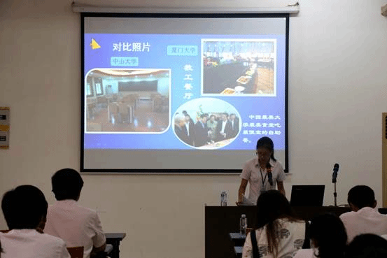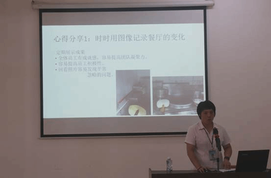 而后,南光餐厅经理陈琳琳对“5D现场管理体系”推行一学期来的丰硕成果做了汇报总结。“5D现场管理体系”是今年中心在管理方面的创新和突破,是结合中心实际情况,最具“厦大特色”的独创理念。陈琳琳表示,南光餐厅作为此管理体系的第一个试点推行餐厅,任务艰巨,责任重大,更要多在这种交流会上展现亮点,提出不足,相互探讨,共同进步。