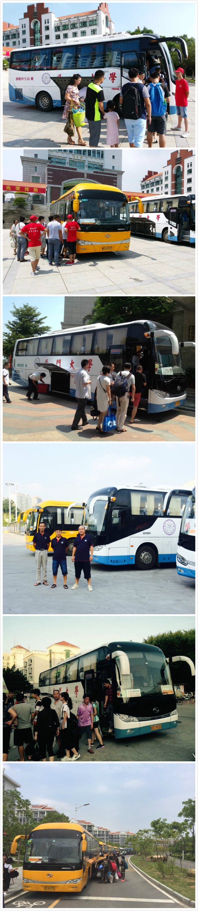 此次本科生迎新共投入大客车40部,两个火车站、嘉庚广场的发车转乘运行合计280余趟次,翔安校区来回短驳接送车辆运行60余趟次;两天合计运送新生及家长一万余人次;共投入货车15部,运送学生行李80余趟次,共计200余吨。其中车辆最早从凌晨四点开始运作,最晚至深夜十二点。