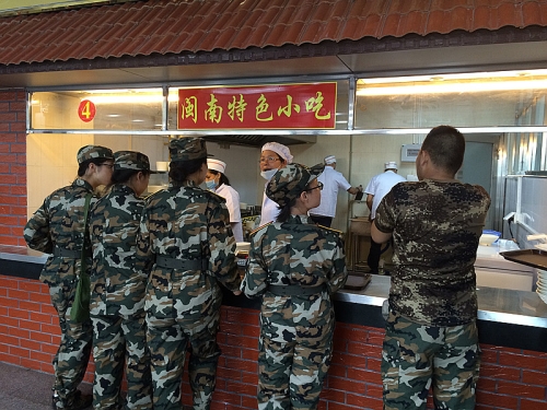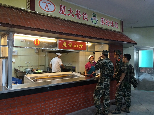 北区餐厅风味小吃城从今年7月18日进入全面装修改造阶段以来,其装改施工与筹备进度也时时牵动着集团党政领导的心。为此,暑假和迎新期间,后勤集团总经理林公明、党委书记叶鹏飞、副总经理郑庆喜先后多次深入餐厅装改现场检查和指导工作,听取工作进度汇报。开业当日,集团总经理助理、漳州校区服务办公室主任吴泱,饮食服务中心主任江森民前往现场各经营窗口进行检查指导,要求北区餐厅在餐厅各个入口设置醒目的告示牌,并积极做好相关就餐引导工作。为确保食品卫生安全,北区餐厅早早便与入驻风味小吃城的合作经营商家约法三章,要求商家必须按照制度进行规范管理、严格执行餐厨操作程序,以“态度热情、服务周到、用语文明”的良好形象,用心服务于前来用餐的嘉院师生。
