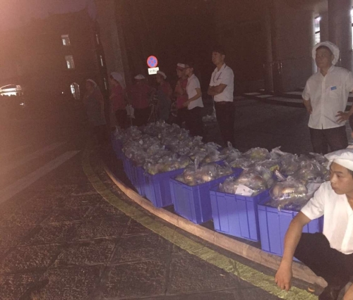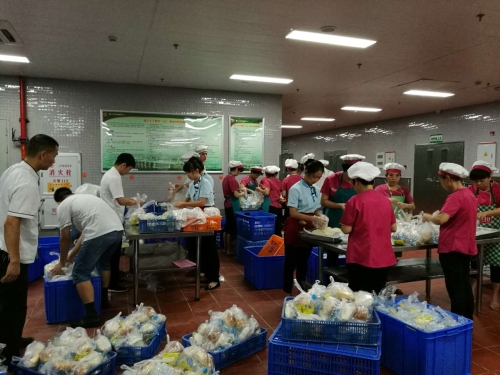 6日凌晨3:00,各家餐厅工作人员已全数到位,动作熟练地投入紧张繁忙的餐品准备工作。在完成各自定额数目的早餐制作之后,餐厅员工们又马不停蹄地完成食品分装、打包作业。为保证将餐品按时送到指定地点,中心办公室全体人员以及机修组、采购组也于凌晨5:00投入到此次供餐工作,8069份餐品被如数装车运抵各指定地点,及时分发给每位学生。