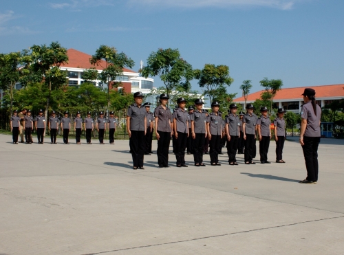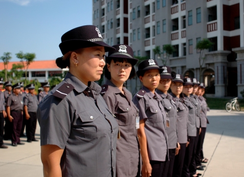 “冬练三九,夏练三伏”,全体安防队员在烈日当空的校园里认真进行着训练科目,晶莹的汗水和湿透的工作服见证着他们的付出,顽强的作风、认真的态度感染着校园里的每一个人,曝晒在阳光下的安防队员们成了校园里另一道靓丽的风景。