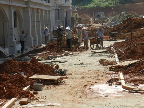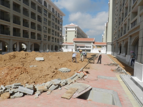 三期学生公寓的绿化筹备工作也正在火热进行中,现已基本完成博学1-5园区周边填土作业,提前做好了三期学生公寓苗木移植外协报价工作并从博学1-5园区开始移植苗木。目前博学6-11周边的填土作业正在继续。