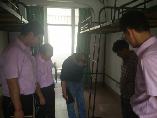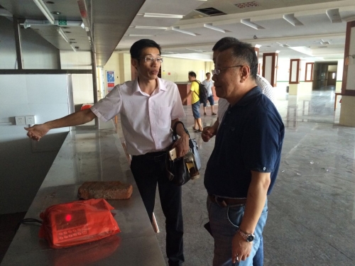 会后,吴泱带领公环物业部负责人刘宜辉、餐饮部负责人吴韶清及与会二级岗管理骨干先后前往博学学生宿舍园区、北区食堂1-3楼装修改造施工现场实地检查迎新筹备工作进度,听取现场管理人员的工作汇报,并就检查中存在的问题提出具体意见和建议。