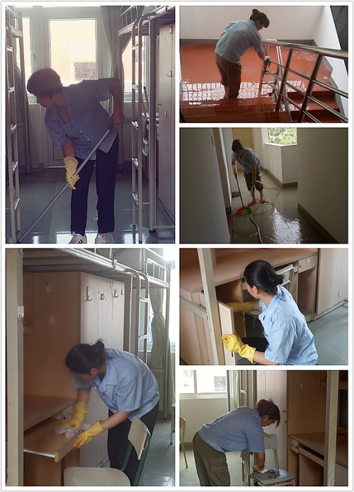 值得一提的是:尽管相较于往年,学生宿舍园区并不在本年度“校园开放日”开放参观区域范围之内,但物业部宿舍组保洁员们仍然不敢有丝毫懈怠。在集团“四特”精神的感召下,她们加班加点忙碌于各个学生宿舍园区的身影随处可见,任凭汗水湿透衣裳却也毫无怨言。