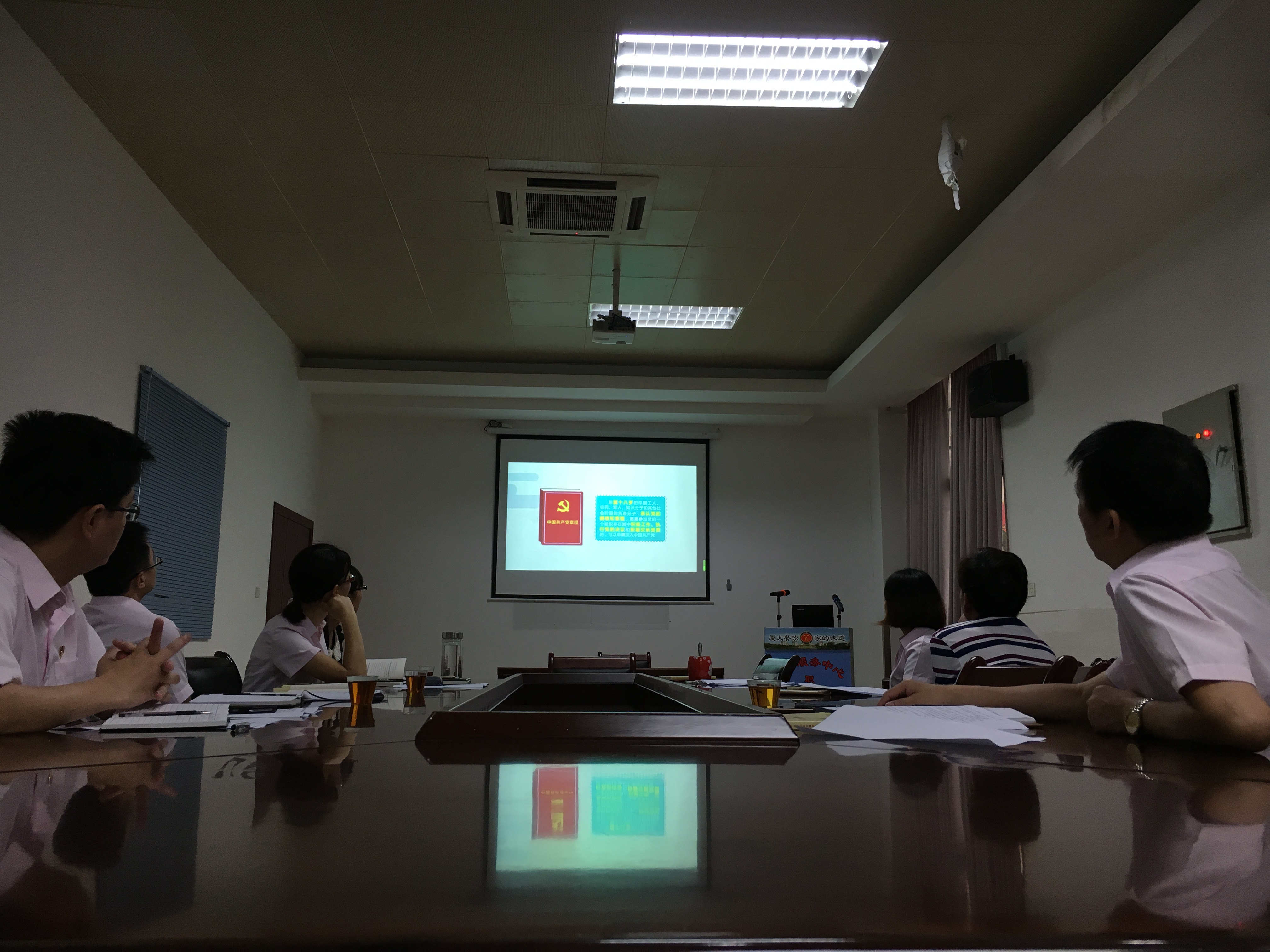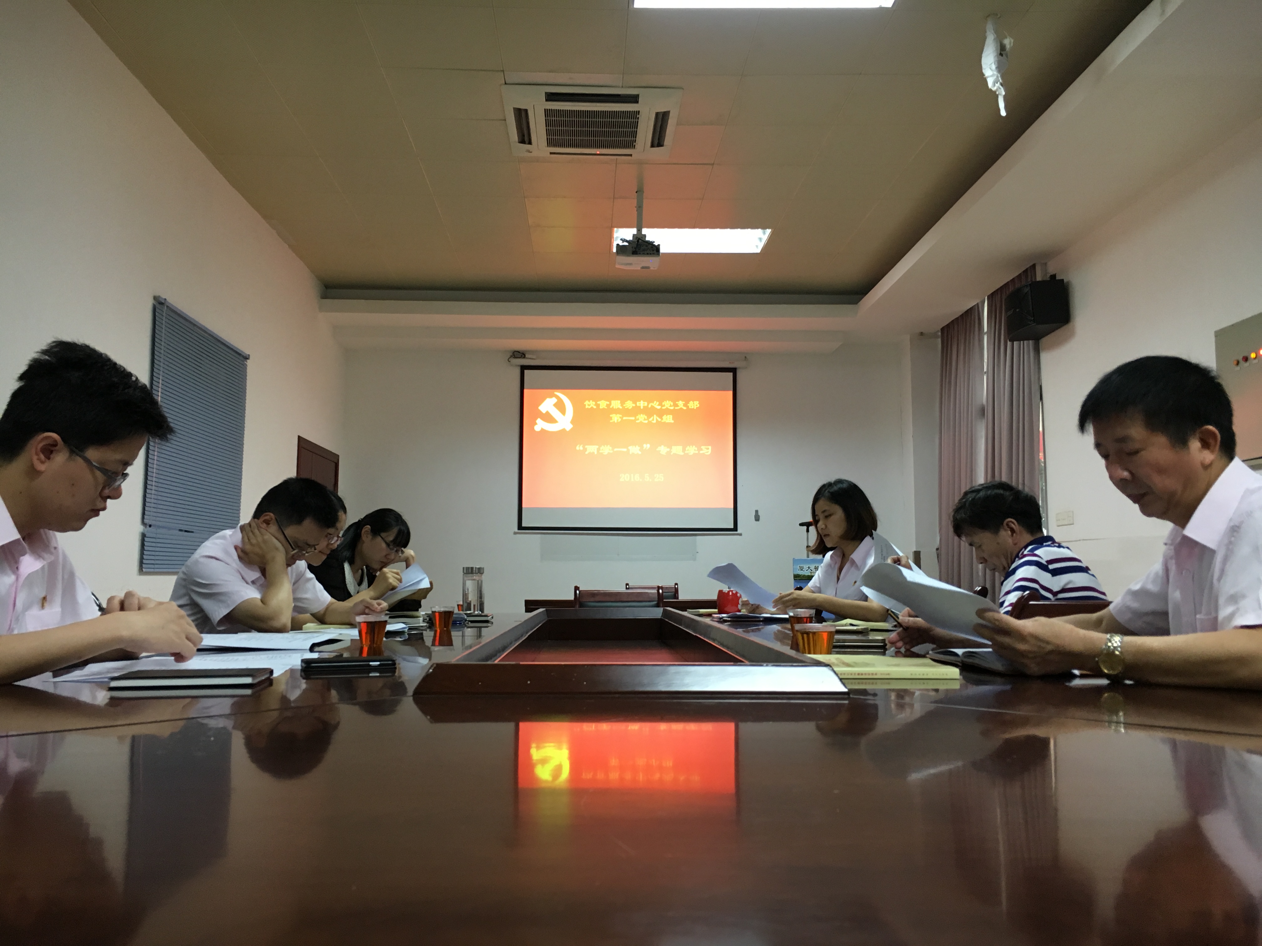 5月25日上午8:30,第一党小组在饮食服务中心会议室集中观看学习了校党委党校提供的“两学一做”网络学习视频。随后在组长、中心办公室主任郑赛莉的主持下,小组成员分别围绕主题,结合自身实际,进行专题发言。