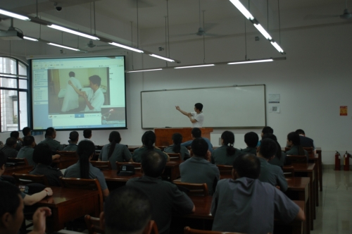讲座在翔安校区学武楼A-105室进行。朱医师就常见多发的心肺复苏、肌肉损伤、脱臼骨折、挤压综合征等配以图例、视频做了讲解。随后,蔡志明主任介绍了中风、中暑、烫伤、摔伤、溺水、出血、中毒等病例,用生动的现场模拟演示让大家受益匪浅。