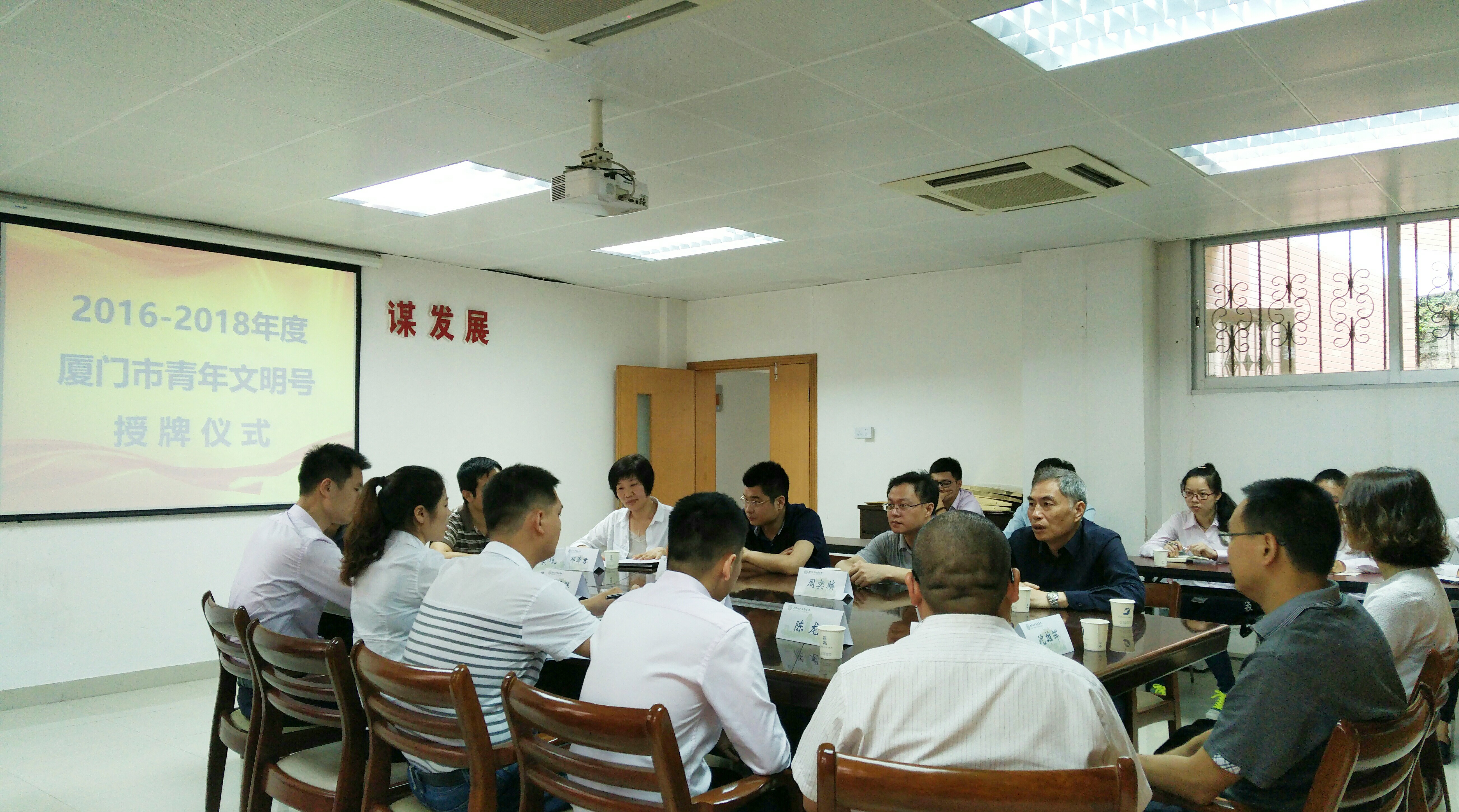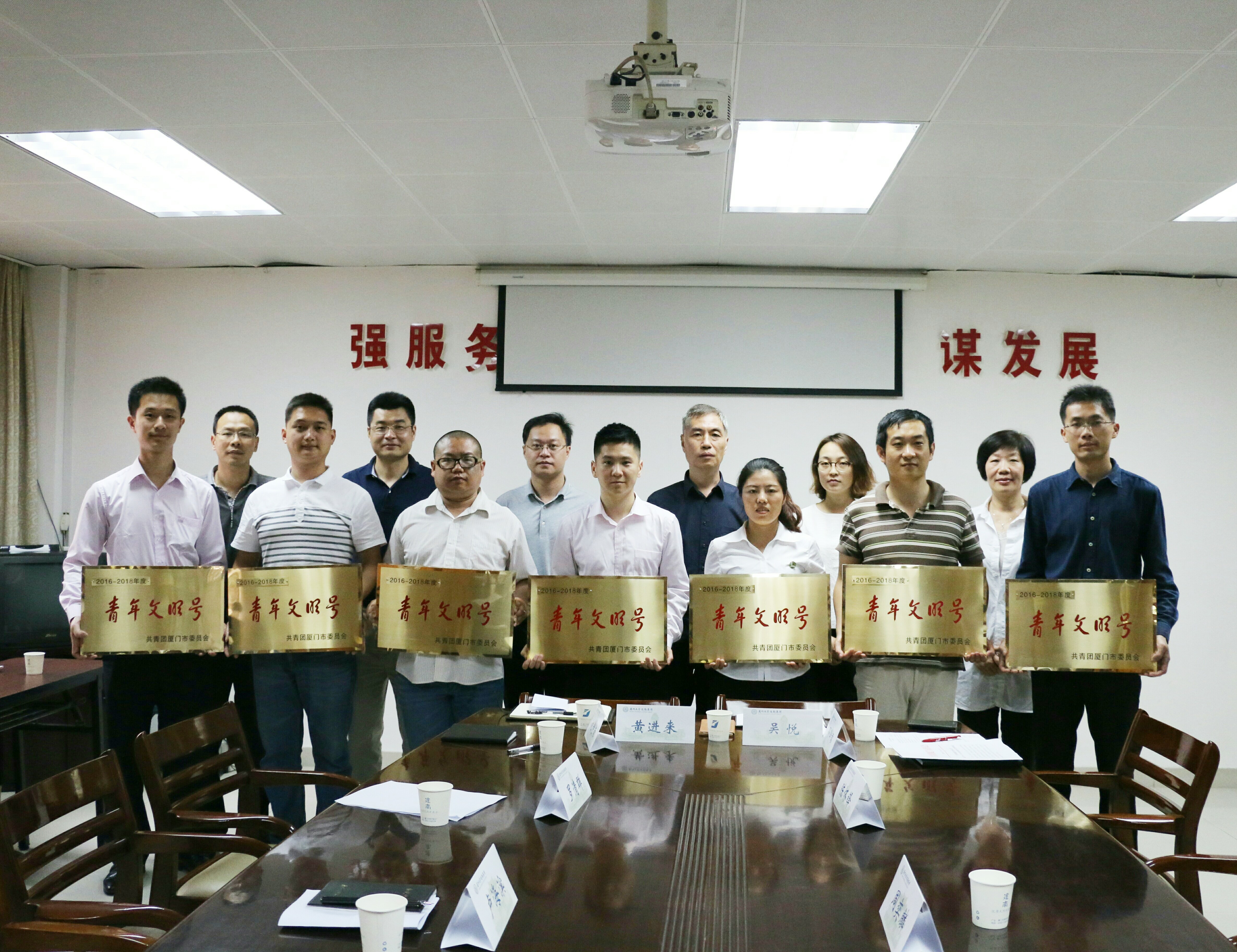 5月11日上午,后勤集团2016-2018年度市级青年文明号授牌仪式在集团会议室举行,本次集团共有包括厦大餐饮五缘湾二中餐厅在内的七个集体获得市级青年文明号荣誉称号。共青团厦门市委员会经济部部长周奕麟、共青团厦门大学委员会书记陈怀锋、厦门大学后勤集团党委书记叶鹏飞出席授牌仪式,后勤集团部门工会、团委及七个青年文明号集体的负责人参加了授牌仪式。仪式由后勤集团党委副书记邓泽君主持。