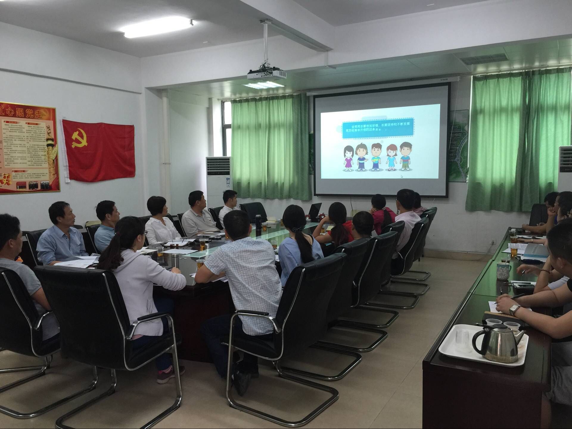 首先,王裕民代表支部向集团党委汇报党支部“两学一做”学习教育方案的开展情况。他特别强调,“两学一做”,基础在“学”,各党小组要按照方案定期组织党员学习;每位党员要坚持经常性自学,做到有计划、有记录、有小结。随后,王裕民组织全体党员一起学习了《习近平教你如何学党章》和《中国共产党章程》系列微课。