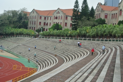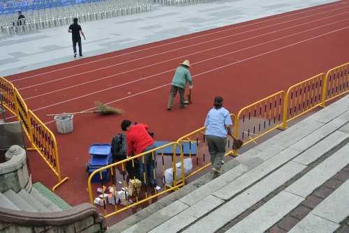 在保洁人员通宵达旦的努力下,洁净的上弦场跑道在晨辉中迎来了锻炼的师生。如此高效的作战结果,展现了厦大后勤人的保障能力和奉献精神。